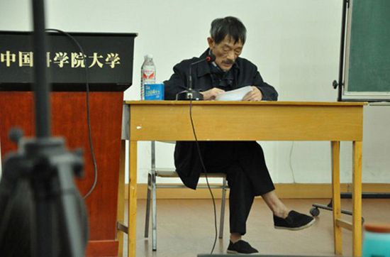 [國內(nèi)新聞]4月21日,人人網(wǎng)流傳一張照片,一位其貌不揚的老人坐在中國科學(xué)院大學(xué)的講臺前,低頭念著發(fā)言稿。這位蓄著胡子、一身黑衣、黑布鞋、沒穿襪子的老人不是來做脫貧報告的,而是一名中科院院士,叫李小文。據(jù)《經(jīng)濟(jì)觀察報》2009年報道,當(dāng)時61周歲的他每天能喝一斤二鍋頭。