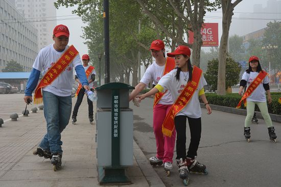 [邯鄲新聞]4月20日上午7點(diǎn),由共青團(tuán)邯鄲市委、邯鄲交通廣播電臺(tái)主辦,河北趙王集團(tuán)有限公司協(xié)辦的“善美邯鄲行、最美青春路首屆邯鄲市青少年文化節(jié) 綠色環(huán)保輪滑行活動(dòng)”,在邯鄲學(xué)院如期進(jìn)行。30余名90后輪滑愛好者組成輪滑環(huán)保志愿服務(wù)隊(duì),身著統(tǒng)一服裝、從邯鄲學(xué)院出發(fā),沿滏河大街-人民路-中華大街滑行,一路上撿拾飲料瓶、塑料袋等白色垃圾,引起了廣大市民的強(qiáng)烈關(guān)注。這次“90后的五四情結(jié)”活動(dòng),展示了青少年的生活風(fēng)采,宣傳了綠色環(huán)保理念。
