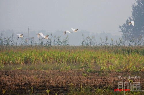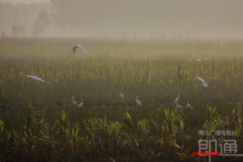 連日來,一群約有40只的白鷺棲息在邯鄲廣平縣東張孟鄉(xiāng)附近的一片玉米田地里。